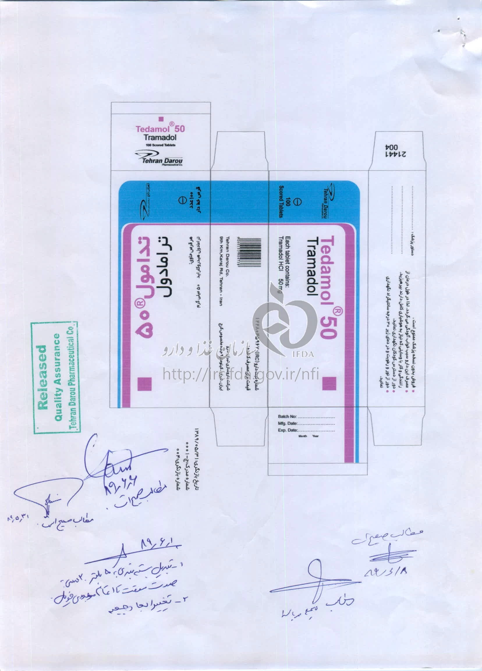 تداخل های دارویی تدامول قرص خوراکی 50 mg