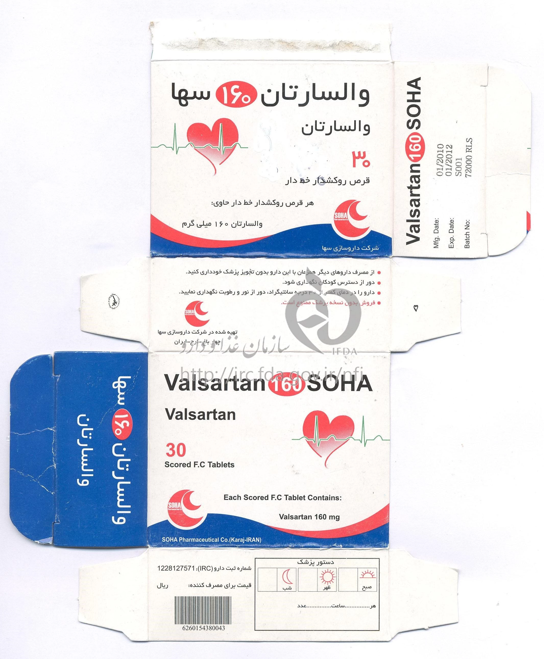 دکترها والسارتان سها قرص خوراکی 160 mg