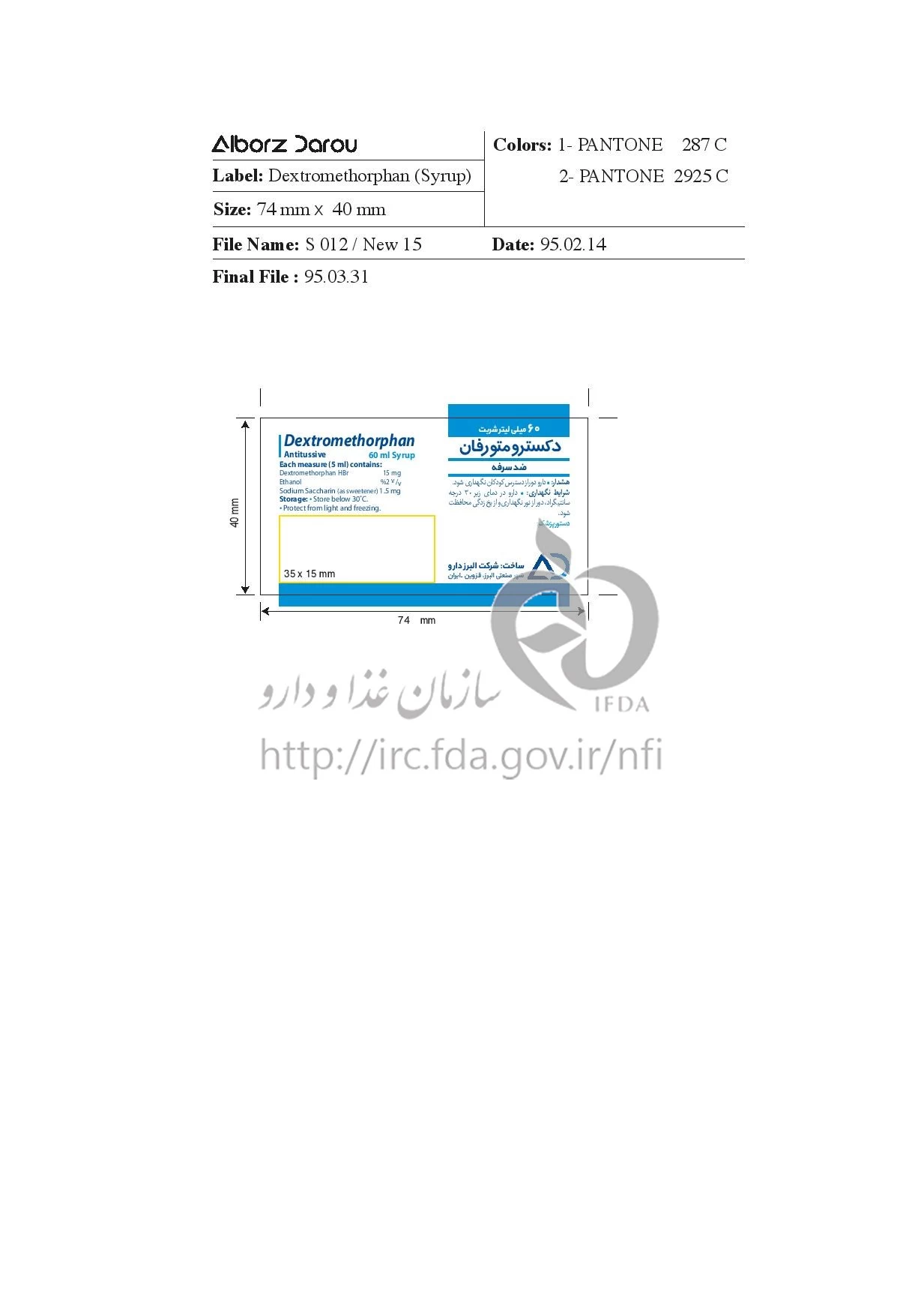 دکسترومتورفان شربت خوراکی 15 mg/5mL 60MILLILITER