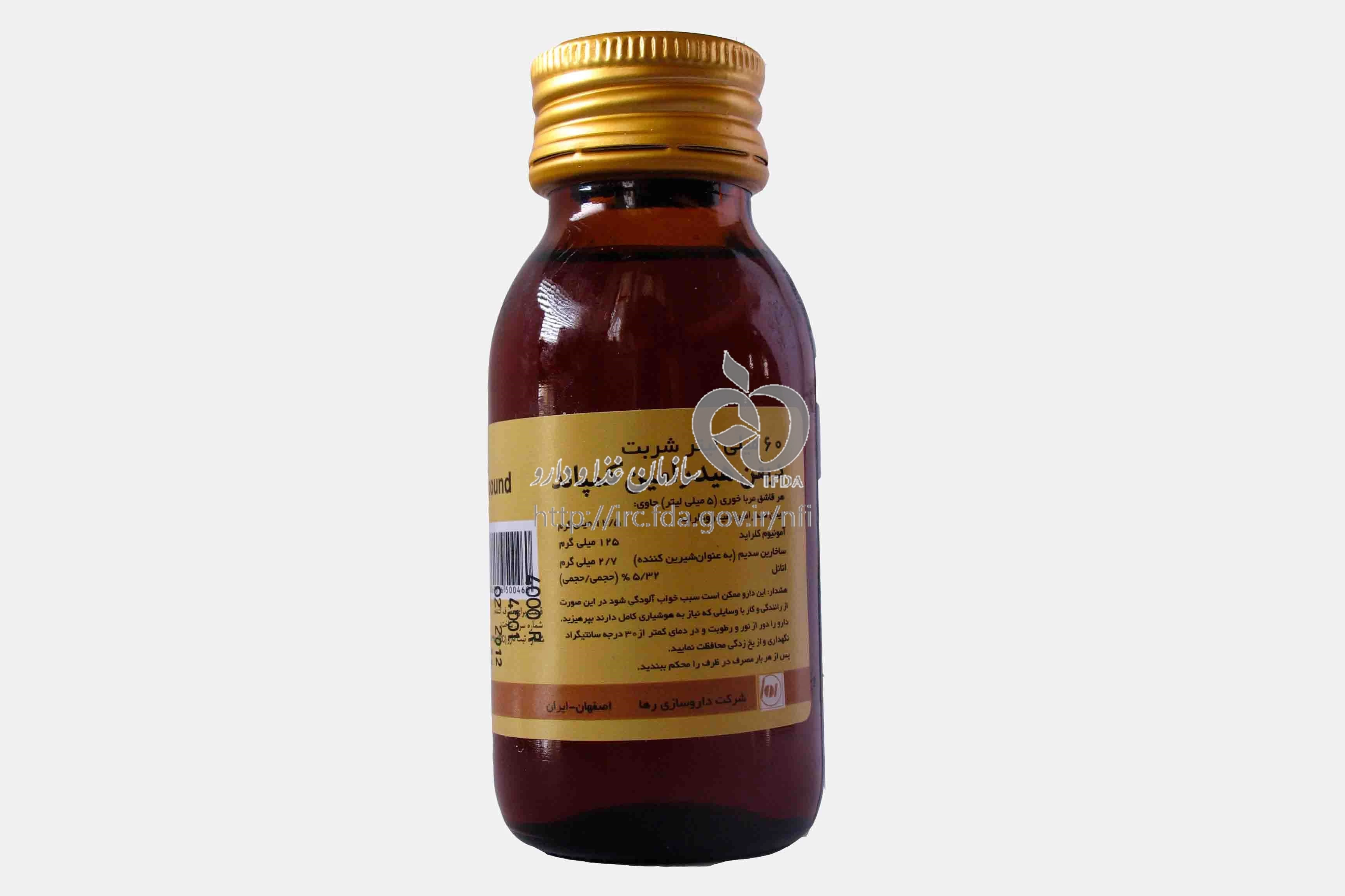 این دارو ترکیبی از دو ماده است: Diphenhydramine و Ammonium Chloride است و برای درمان سرما، سرفه، عطسه و احتقان بینی به کار میرود. این دارو با کاهش ترشحات بینی و رفع التهابات دستگاه تنفسی عمل میکند. نحوه مصرف این دارو به شرح زیر است: - بطور دقیق دستور پزشک را دنبال کنید. - دارو را با کمی آب میل کنید. - از این دارو معمولاً سه بار در روز استفاده میشود. - قبل از استفاده تکان داده شود و با دوزسنج، میزان مصرف وزنی برای کودکان بسته به سن ووزن محاسبه گردد. - داروی DIPHENHYDRAMINE / AMMONIUM CHLORIDE SYRUP ORAL 12.5 mg/125 mg/5mL 60MILLILITER به موقع و بدون تغییر دوز مصرف شود. قبل از مصرف این دارو، بهتر است با یک پزشک یا داروساز مشورت کنید.