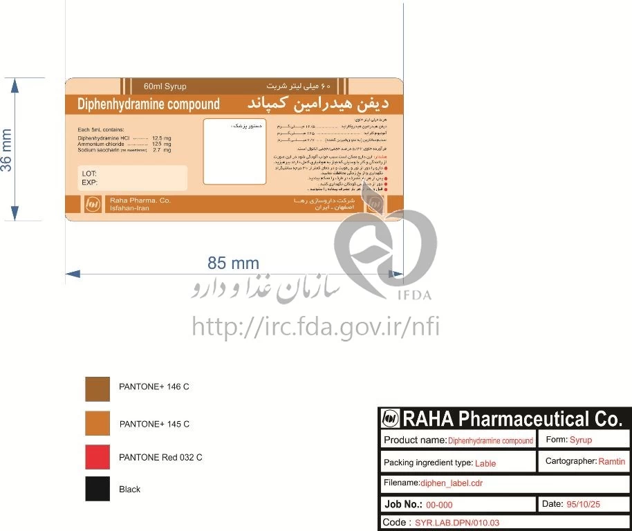 دیفن هیدرامین کامپاند شربت خوراکی 12.5 mg/125 mg/5mL 60MILLILITER