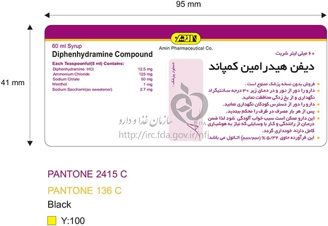 دیفن هیدرامین کامپاند شربت خوراکی 12.5 mg/125 mg/5mL 60MILLILITER