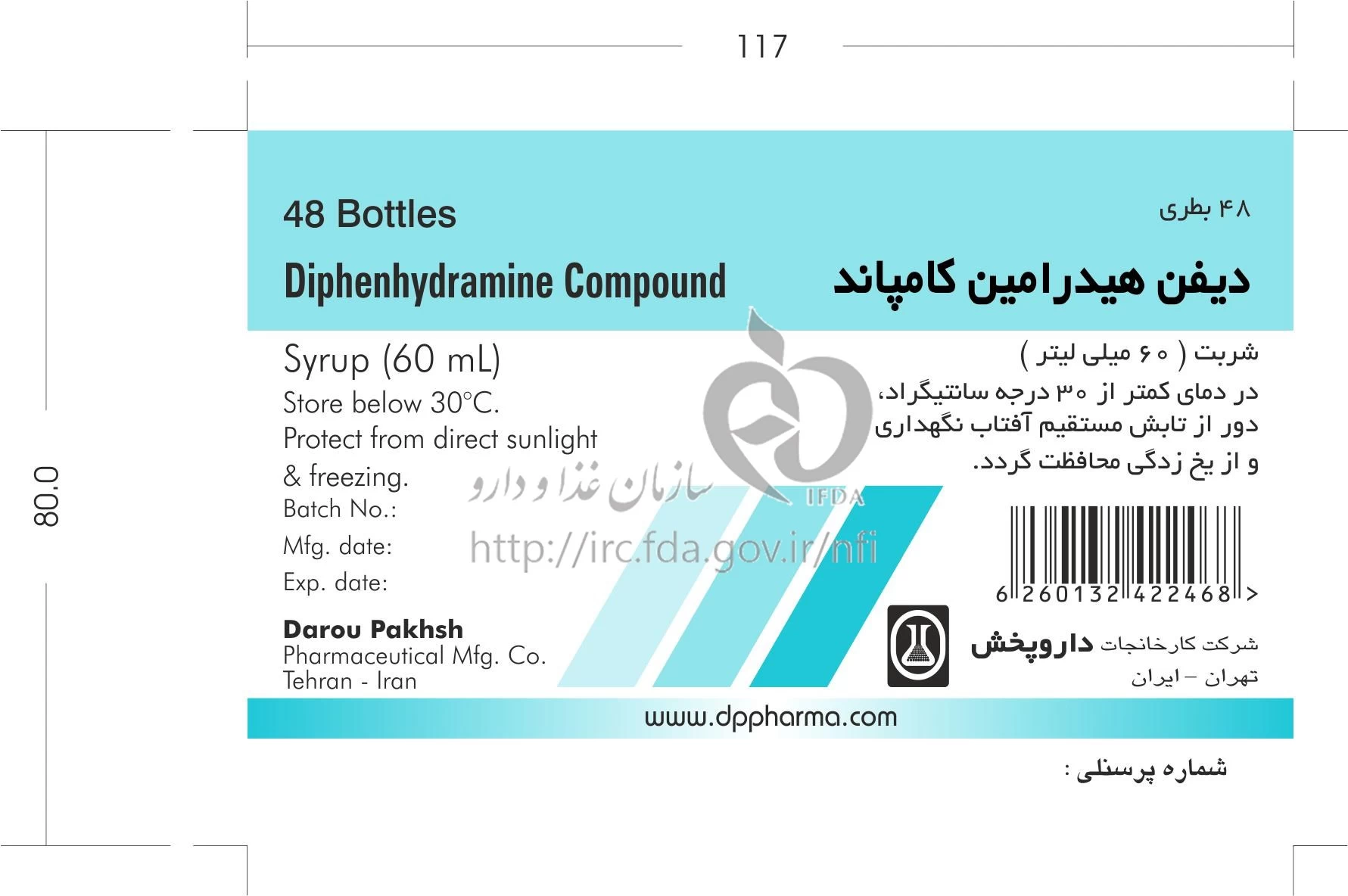 دیفن هیدرامین کامپاند شربت خوراکی 12.5 mg/125 mg/5mL 60MILLILITER