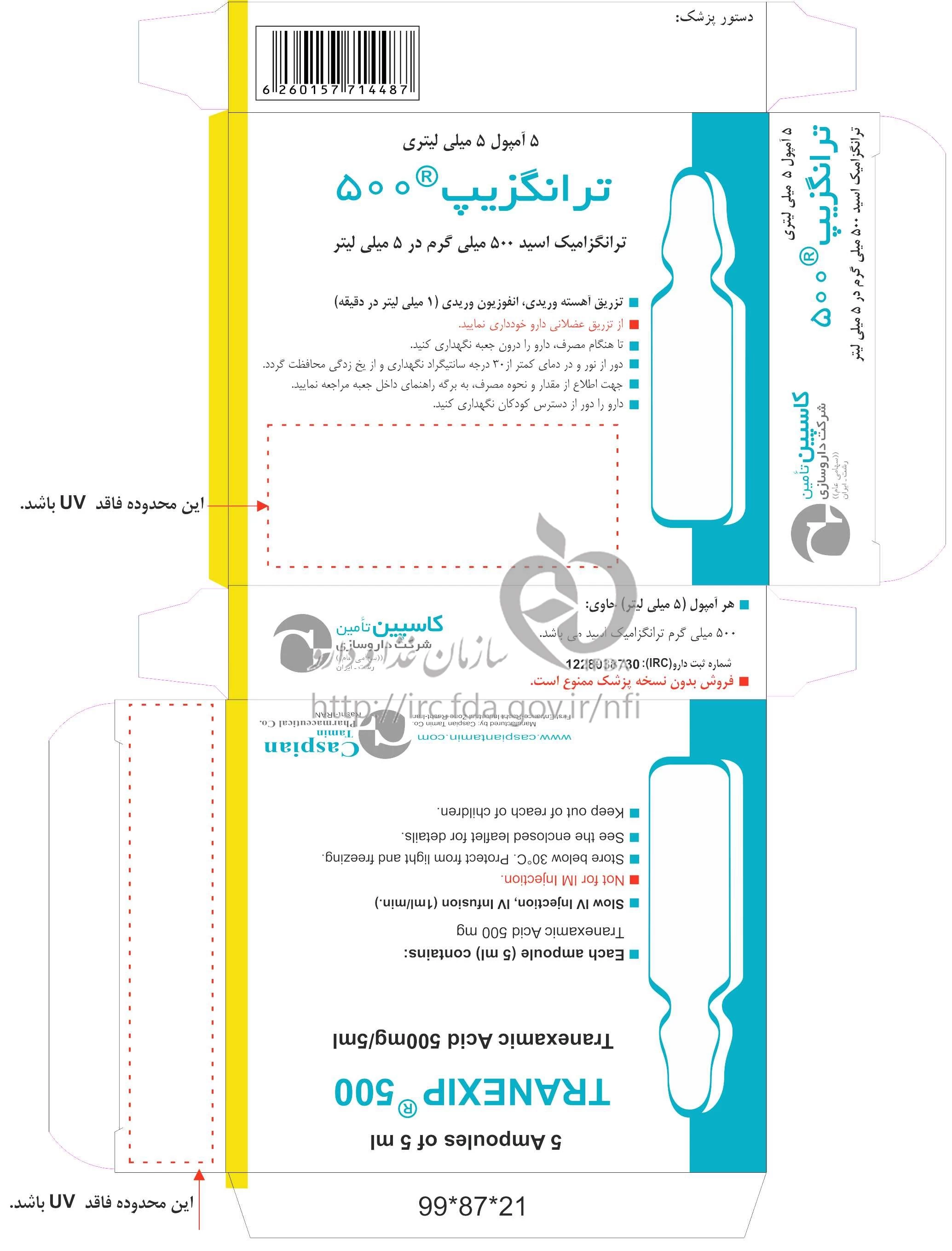 ترانگزیپ تزریقی پرنترال 100 mg/1mL 5MILLILITER