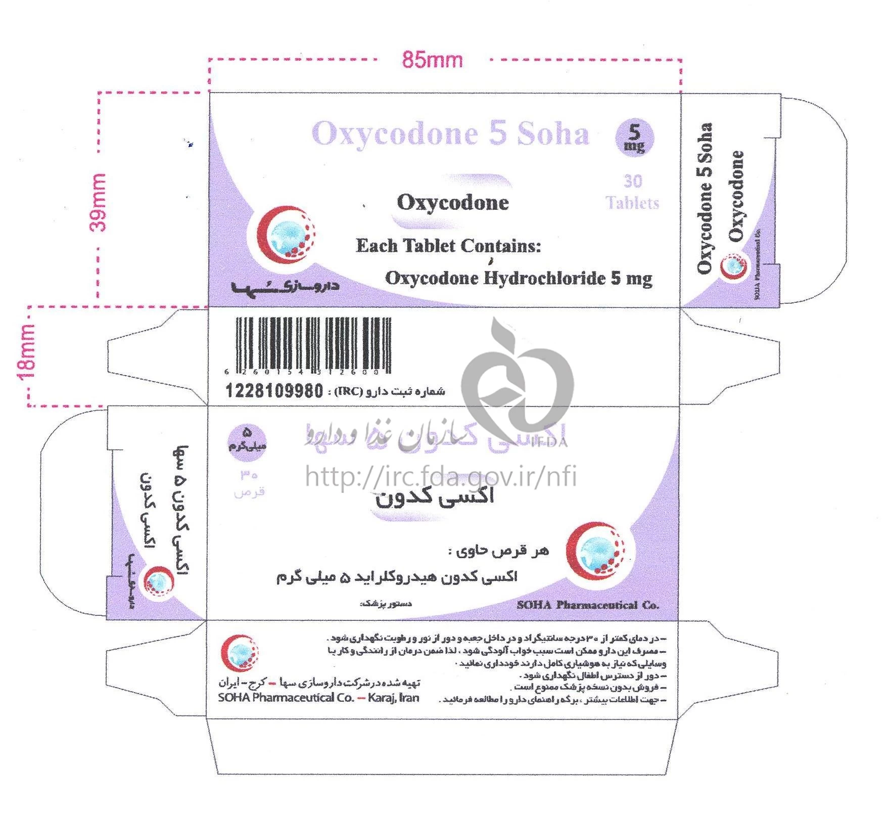 دکترها اکسی کدون سها قرص خوراکی 5 mg