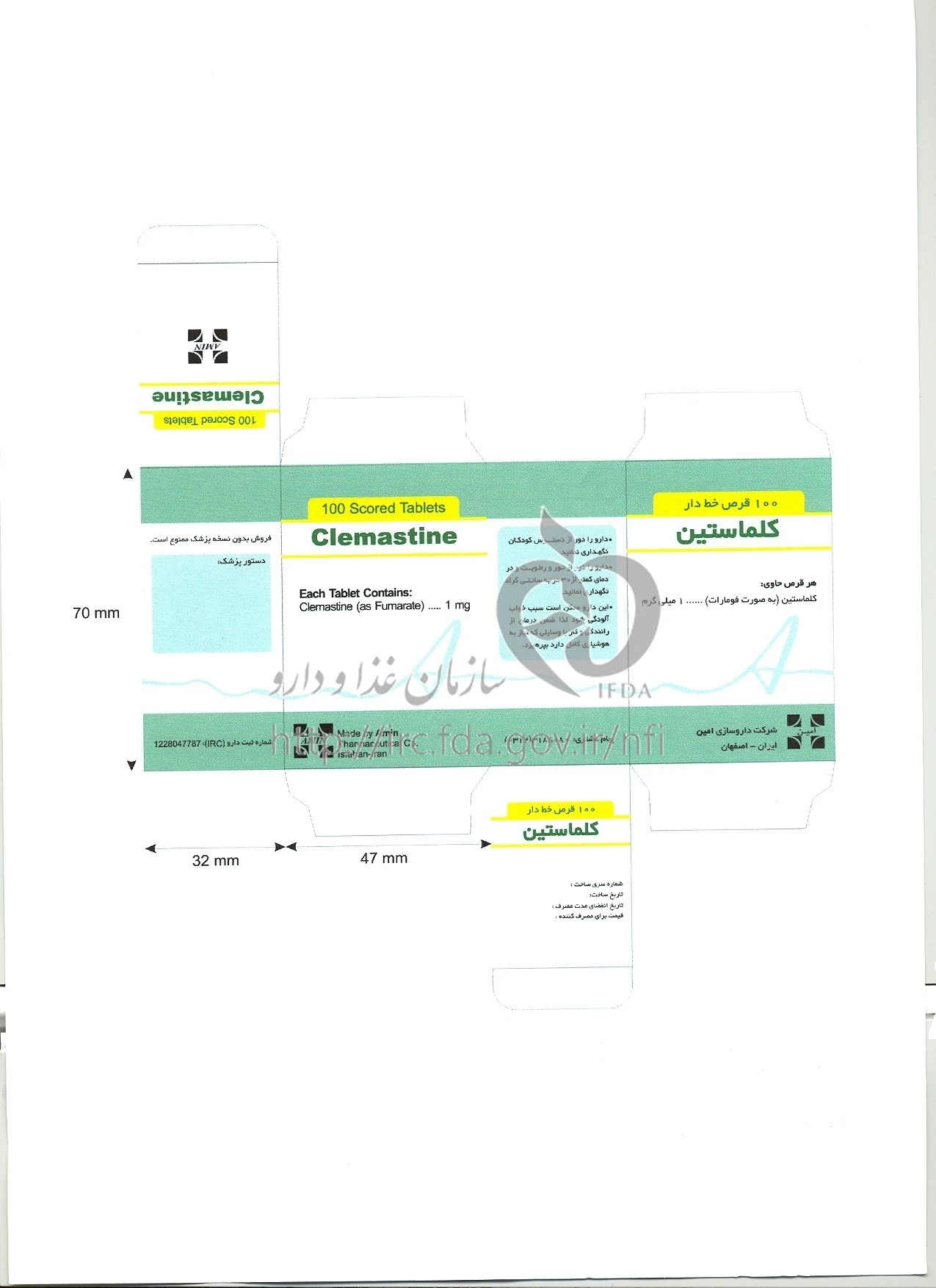 کلماستین قرص خوراکی 1 mg