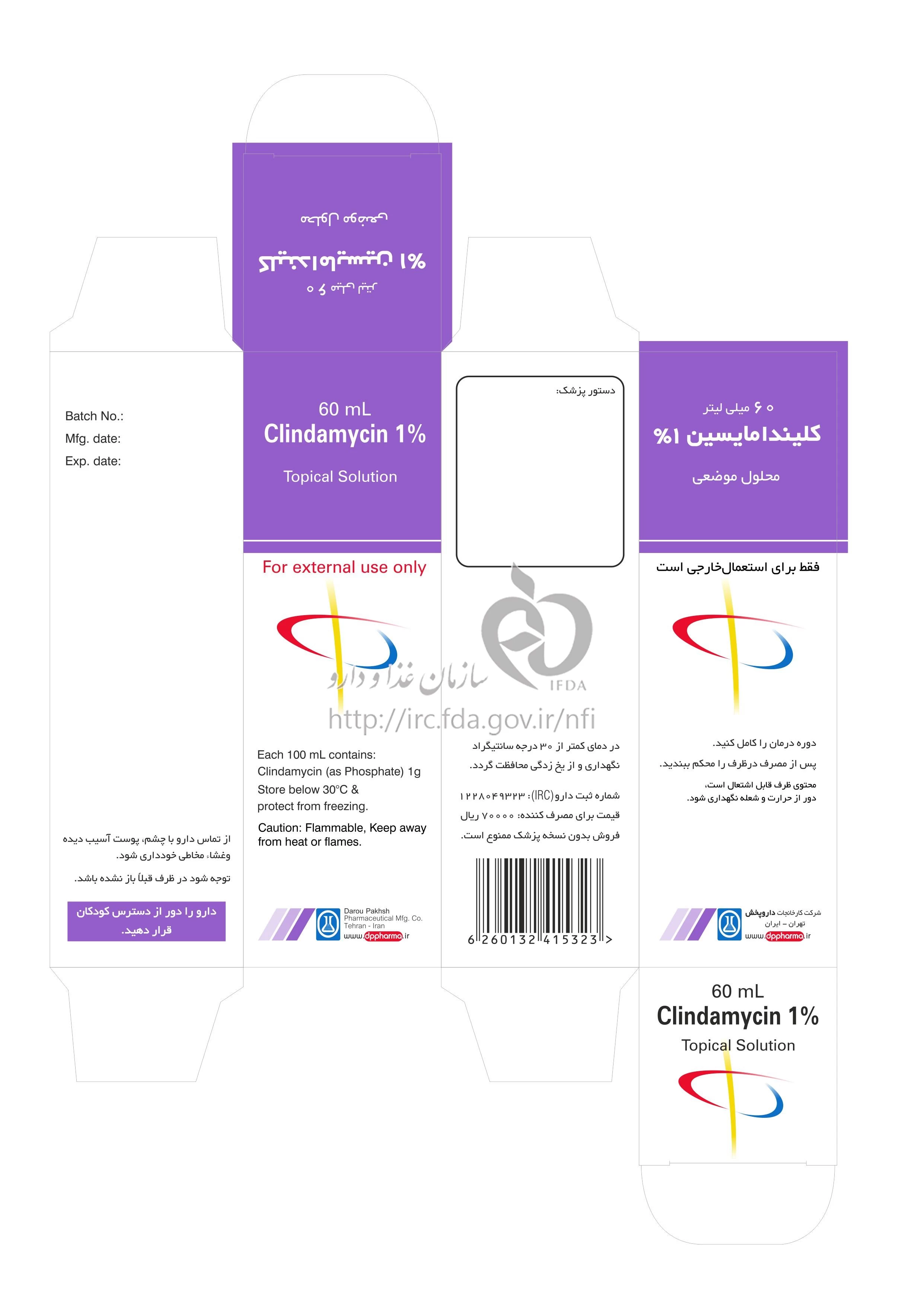 کلیندامایسین محلول موضعی 10 mg/1mL 60MILLILITER