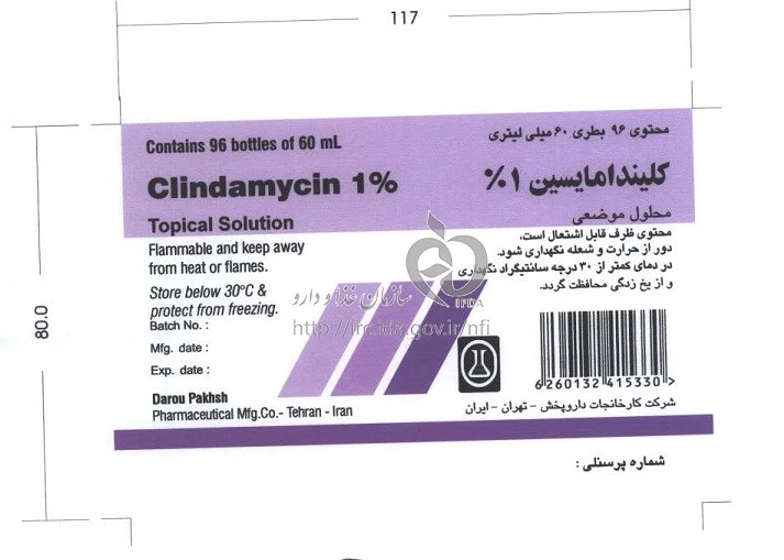 داروی Clindamycin Solution Topical 10 mg/1mL 60mL برای درمان عفونت های پوستی باعث شده توسط باکتری ها مانند آکنه و ترشح چربی موثر است. این دارو به عنوان یک آنتی بیوتیک محسوب می شود. نحوه مصرف این دارو به منظور درمان مشکل پوستی، عبارت است از: 1. پوست را با آب و صابون تمیز کنید و به خوبی خشک کنید. 2. محتویات بطری را با ملاحظه دستورالعمل های داروساز بر روی پوست آسیب دیده بمالید. 3. بهتر است دارو را با دست کمی بمالید و پوست را به راحتی جذب کنید. 4. در صورت استفاده از بیشتر از یک دارو، فاصله خاصی بین دو استفاده وجود نخواهد داشت، به شرطی که مراقب باشید که پوست خشک باشد. 5. دارو را باید مطابق با دستور پزشک درمان کنید. همچنین، قبل از مصرف این دارو باید به دقت دستورات پزشک یا داروساز را مطالعه کنید.