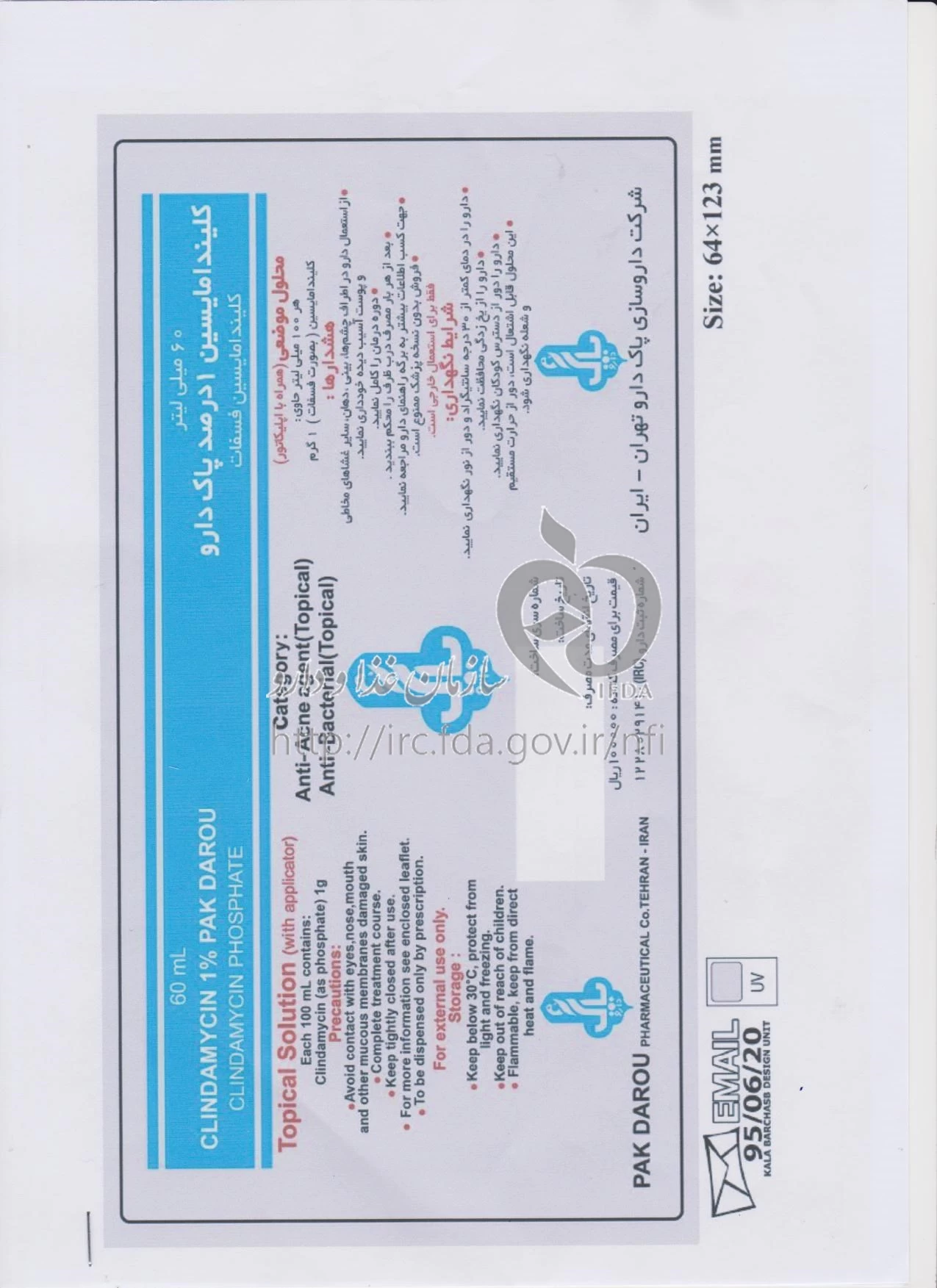 موارد مصرف ، عوارض جانبی ، مصرف بارداری و تداخلات دارویی کلیندامایسین پاک دارو محلول موضعی 10 mg/1mL 60MILLILITER