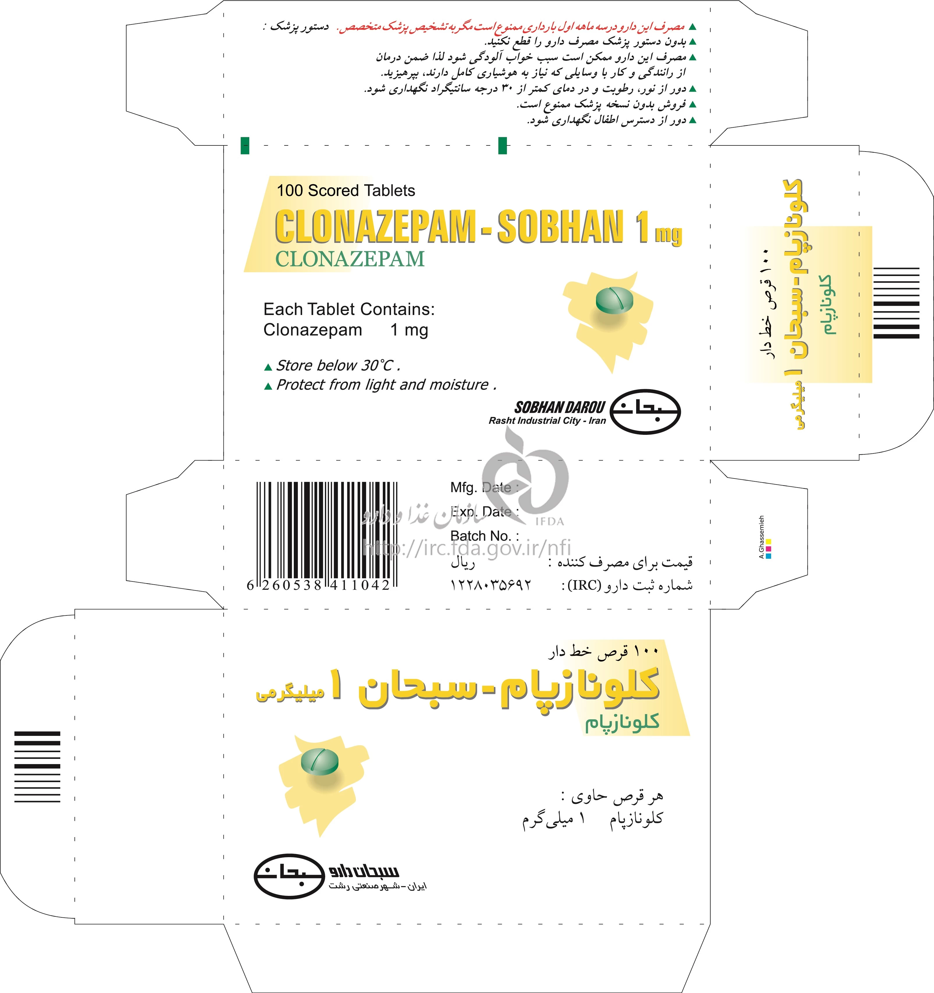 کلونازپام - سبحان قرص خوراکی 1 mg