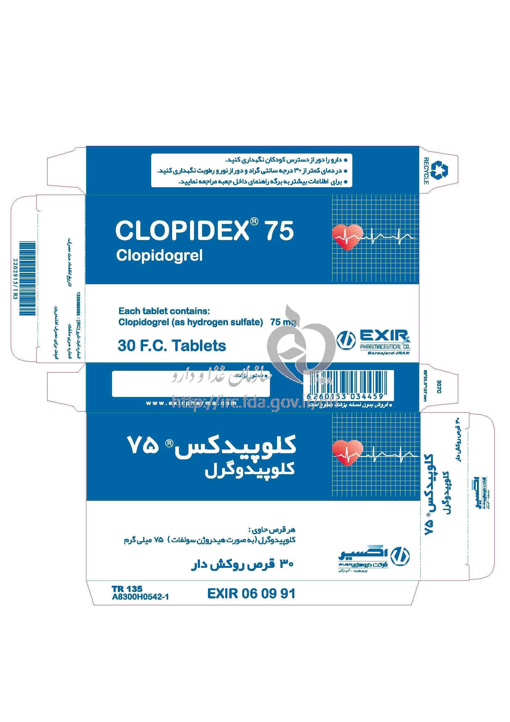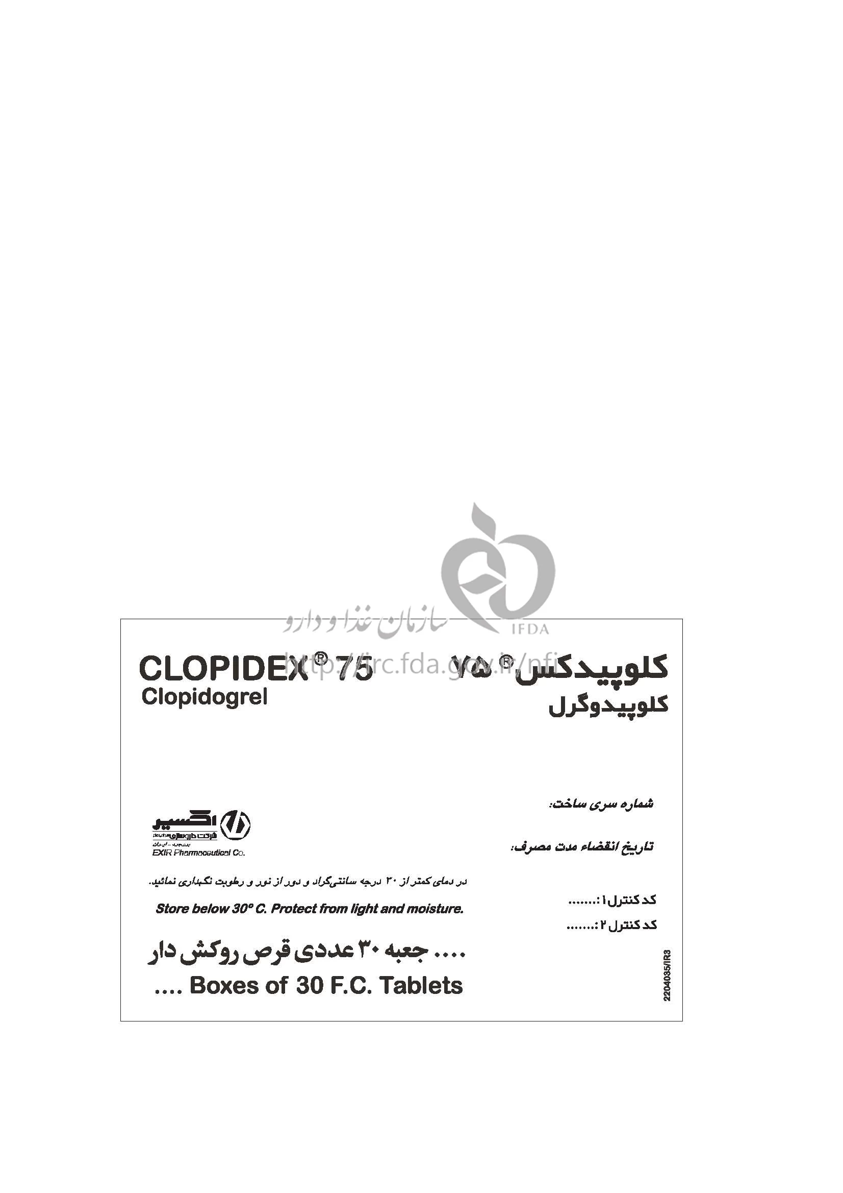 کلوپیدکس قرص خوراکی 75 mg