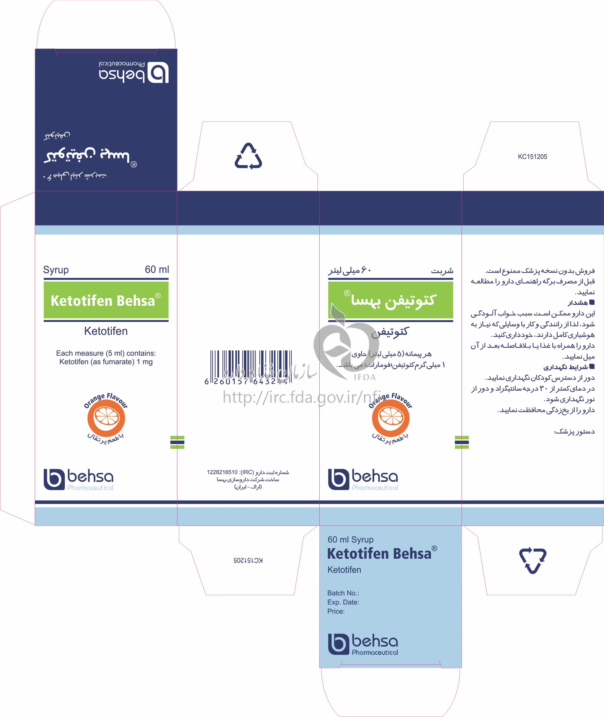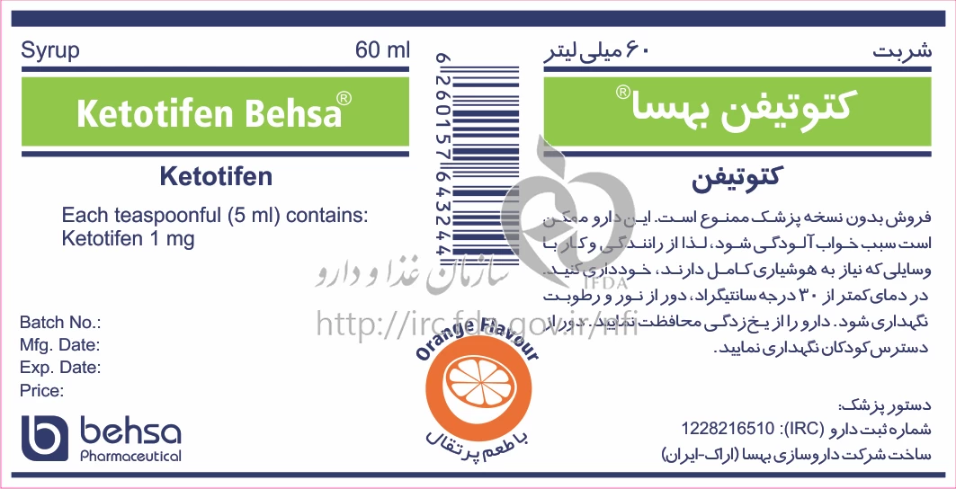 کتوتیفن بهسا شربت خوراکی 1 mg/5mL 60MILLILITER