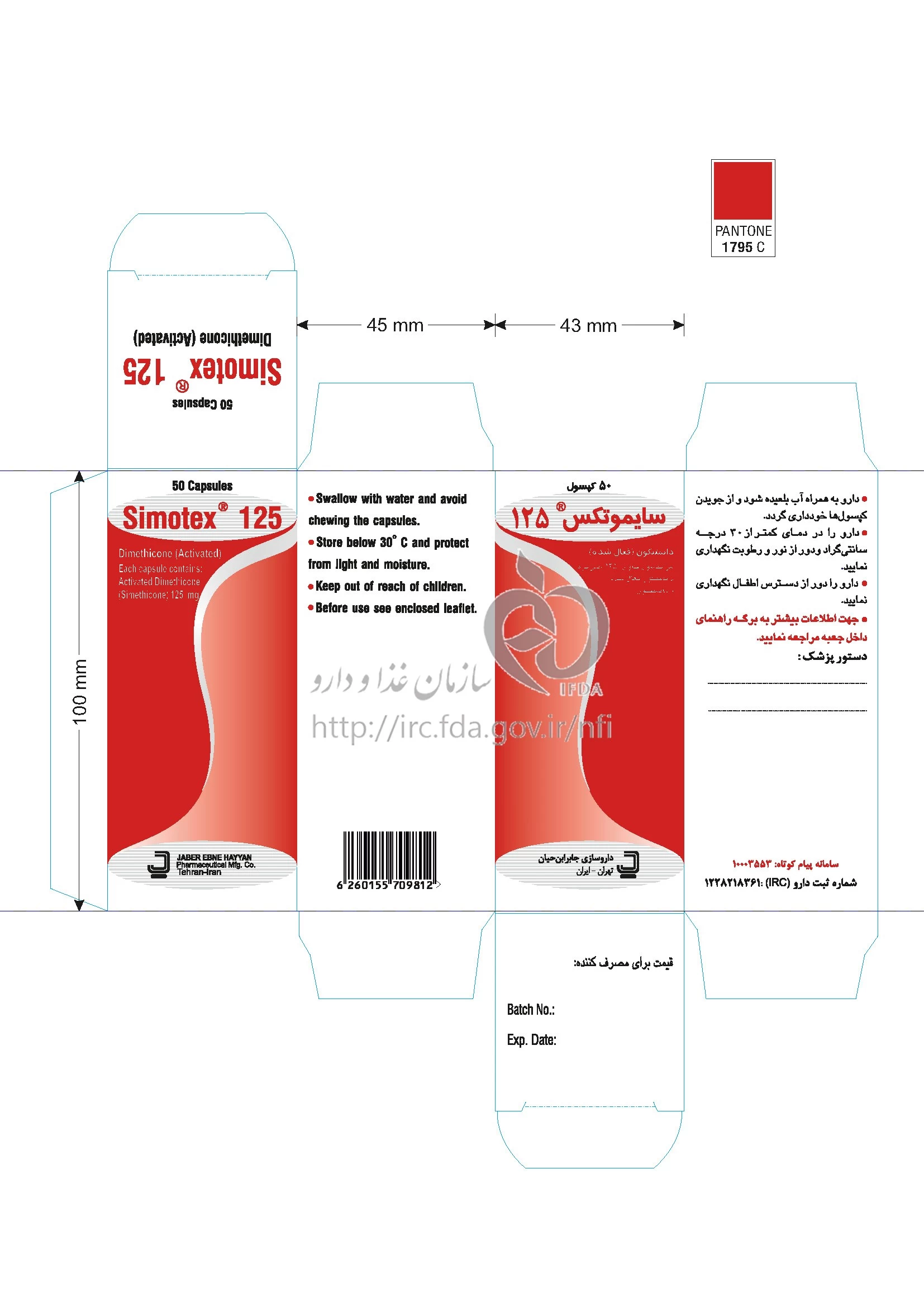 سایموتکس کپسول با روکش ژلاتین خوراکی 125 mg
