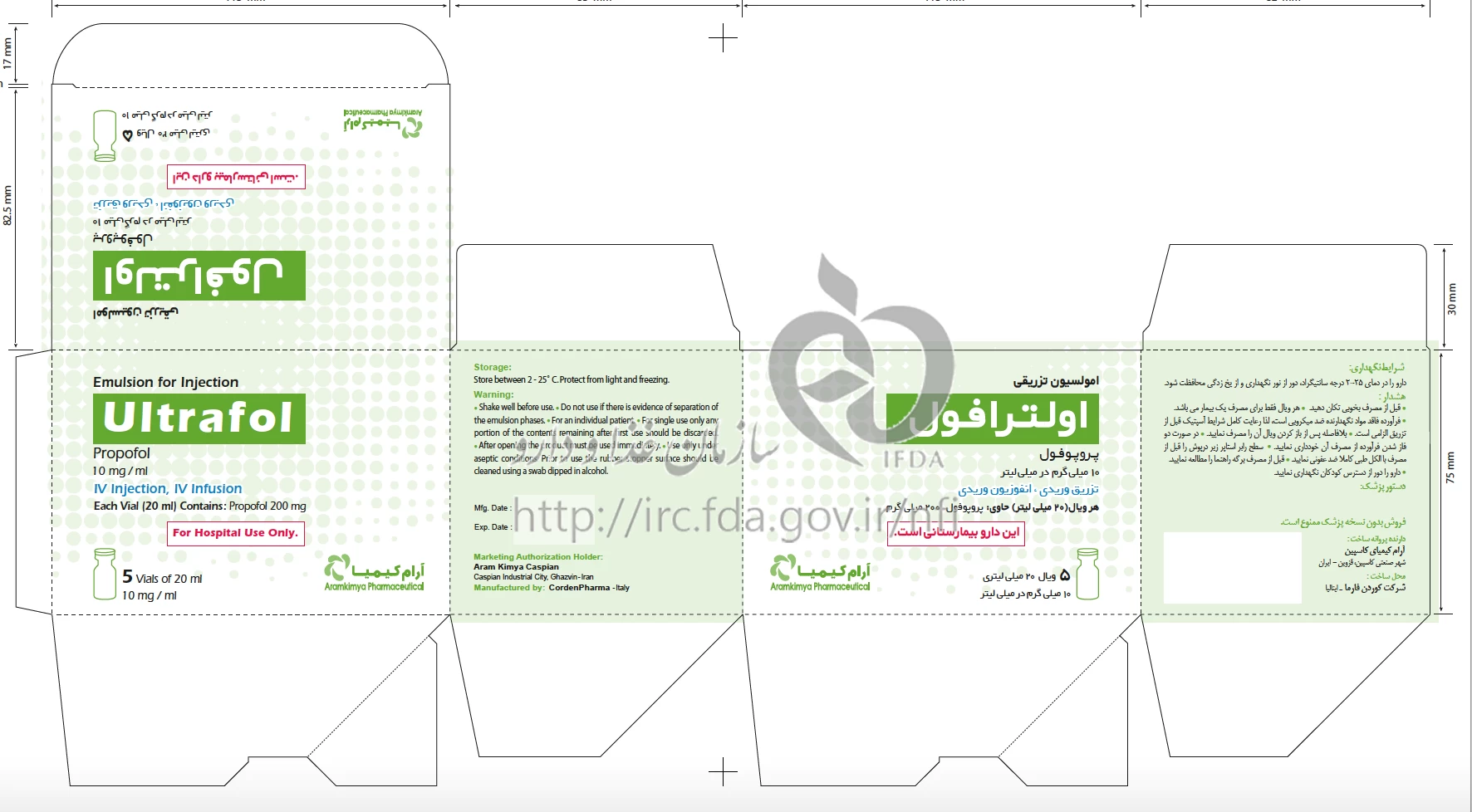 اولترافول امولسیون تزریقی پرنترال 10 mg/1mL 20MILLILITER