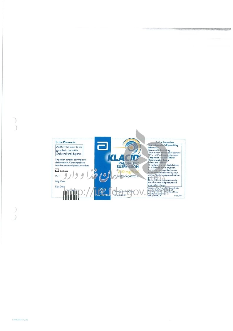 کلاسید پودر برای تهیه سوسپانسیون خوراکی 250 mg/5 mL 60MILLILITER