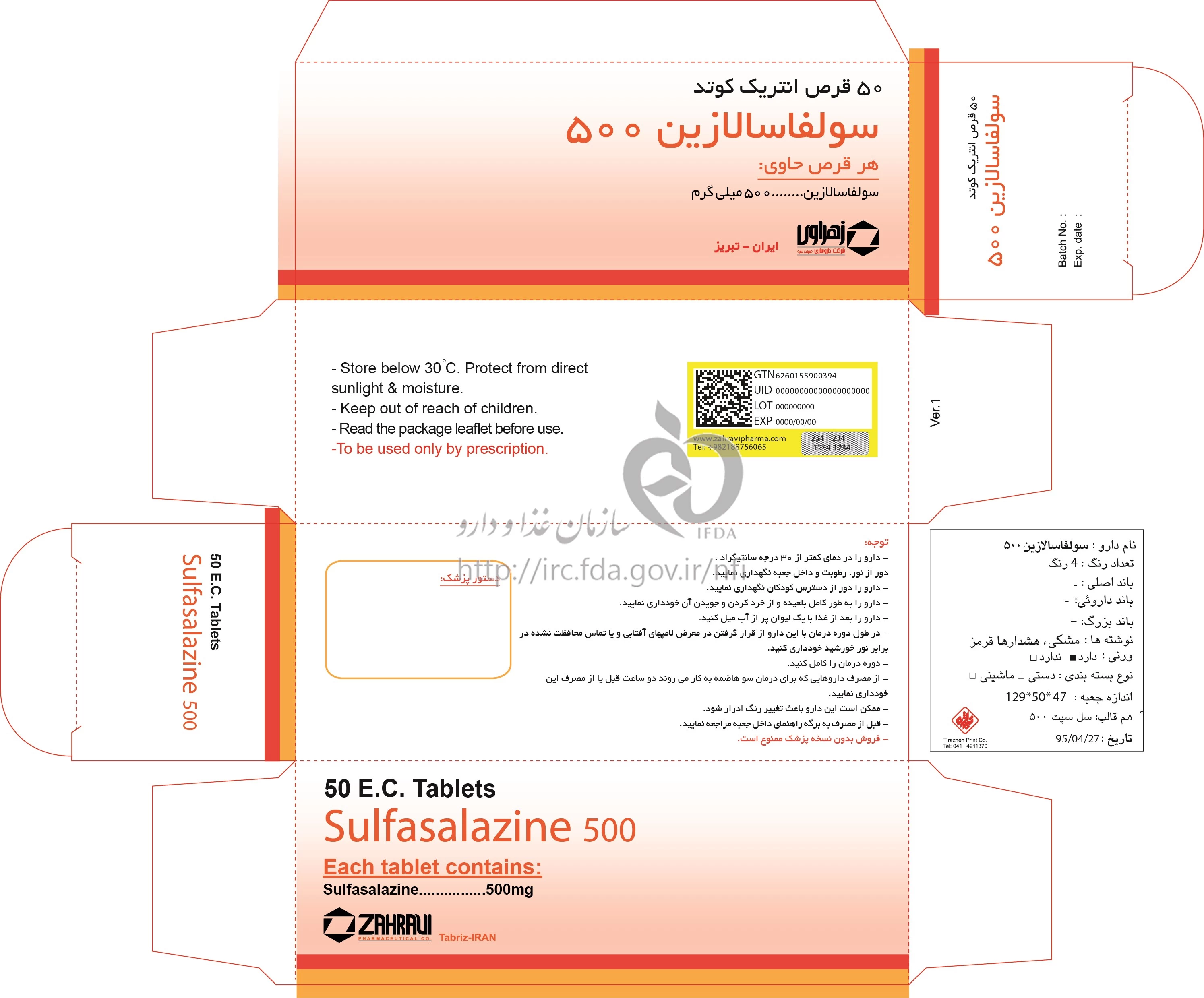سولفاسالازین قرص انتریک کوتد خوراکی 500 mg