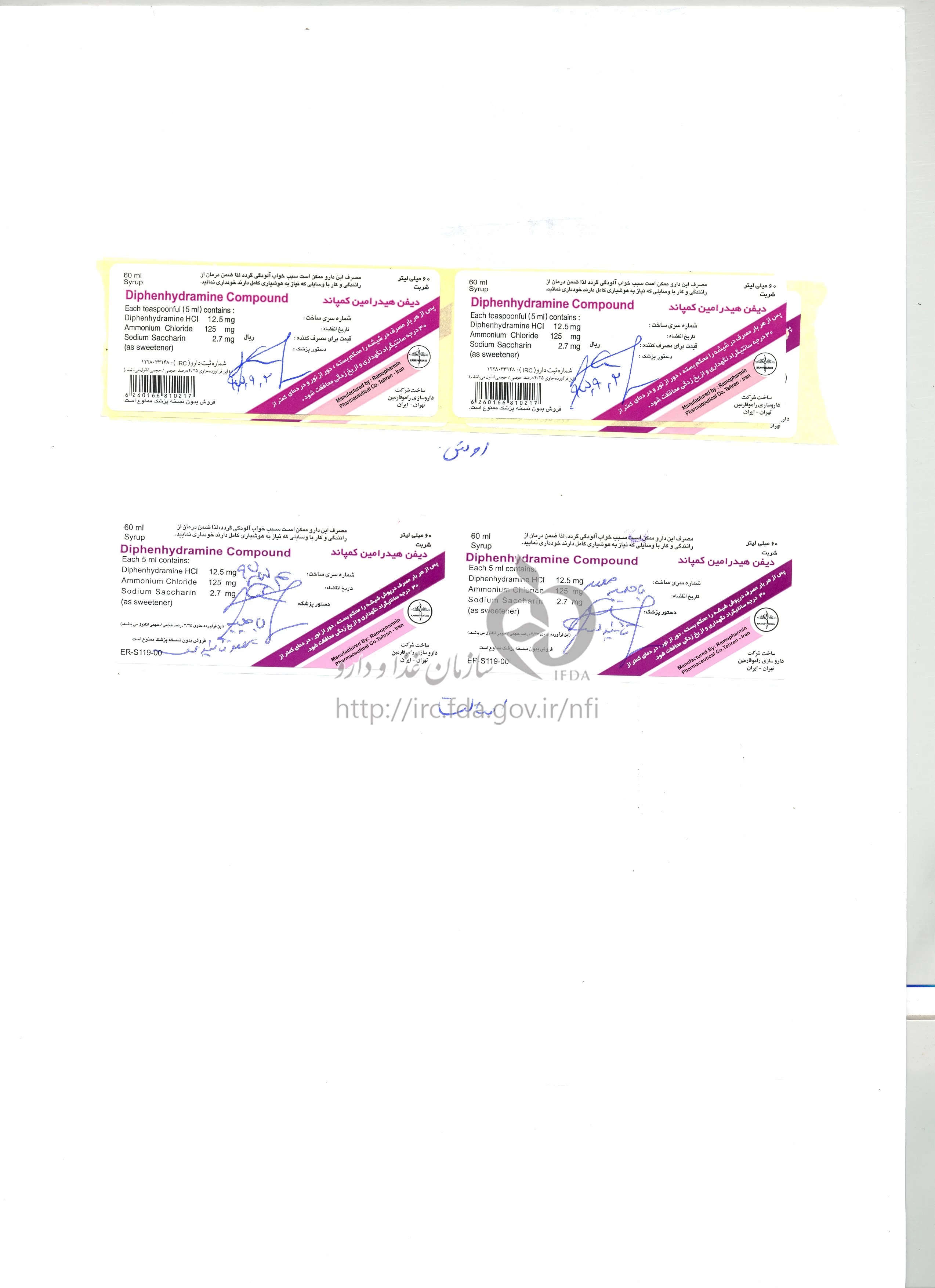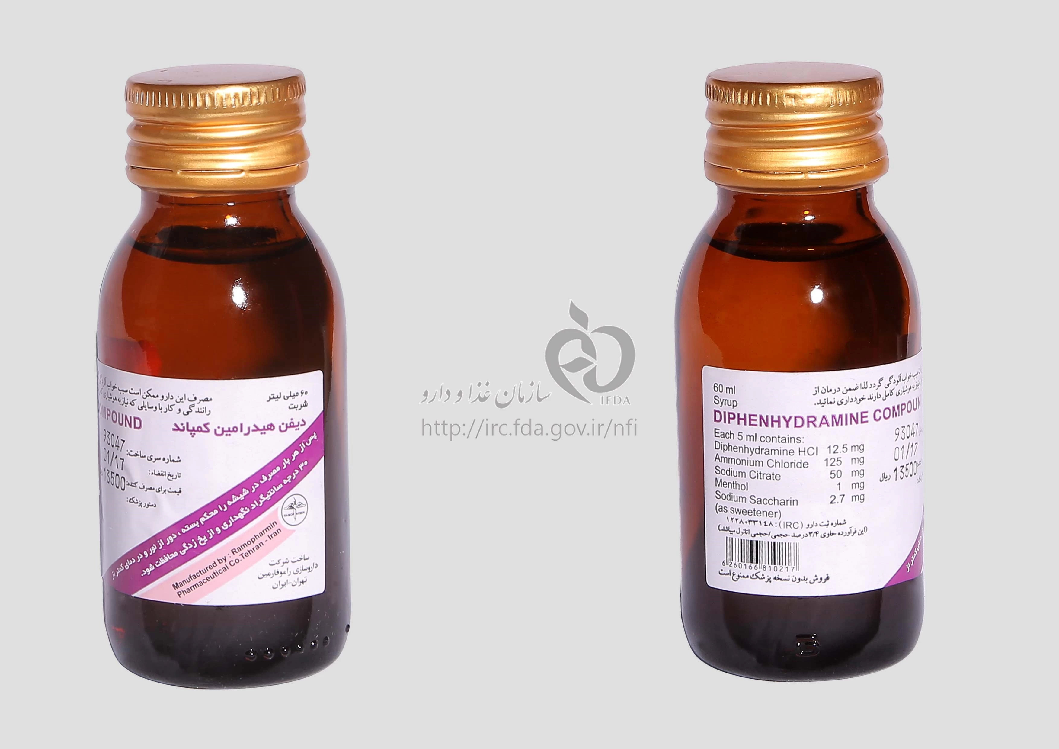 دیفن هیدرامین کامپاند شربت خوراکی 12.5 mg/125 mg/5mL 60MILLILITER