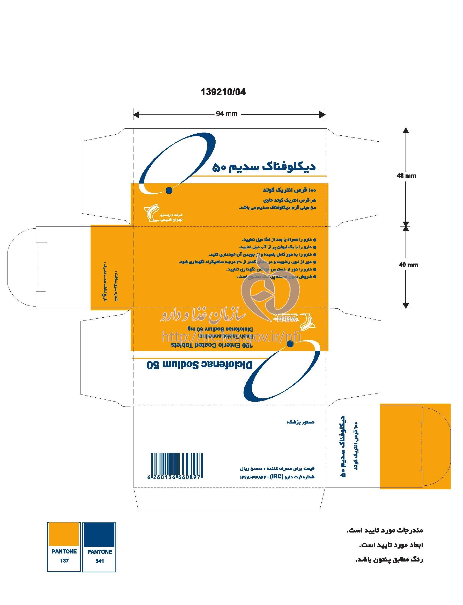 دیکلوفناک سدیم قرص انتریک کوتد خوراکی 50 mg