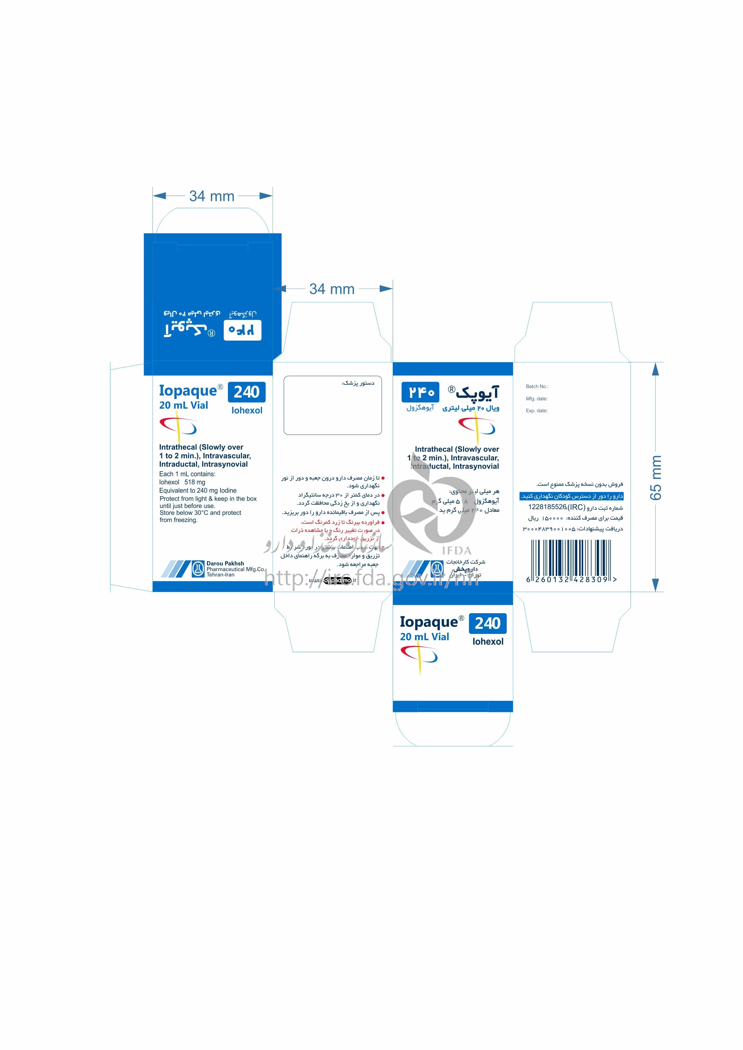 آیوپک تزریقی پرنترال 240 mg/1mL 20MILLILITER