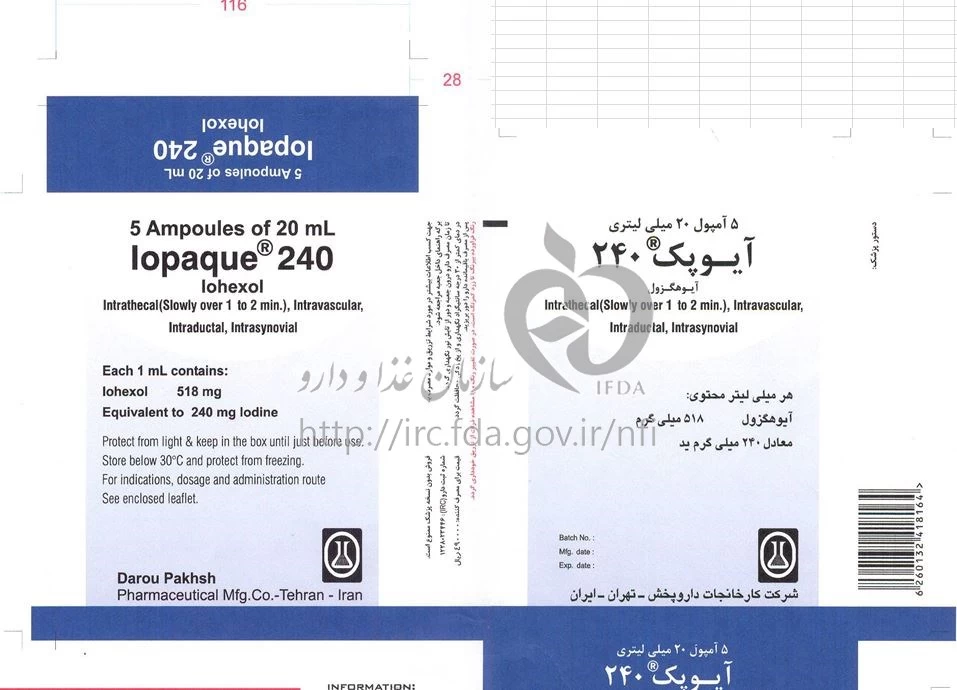 آیوپک تزریقی پرنترال 240 mg/1mL 20MILLILITER