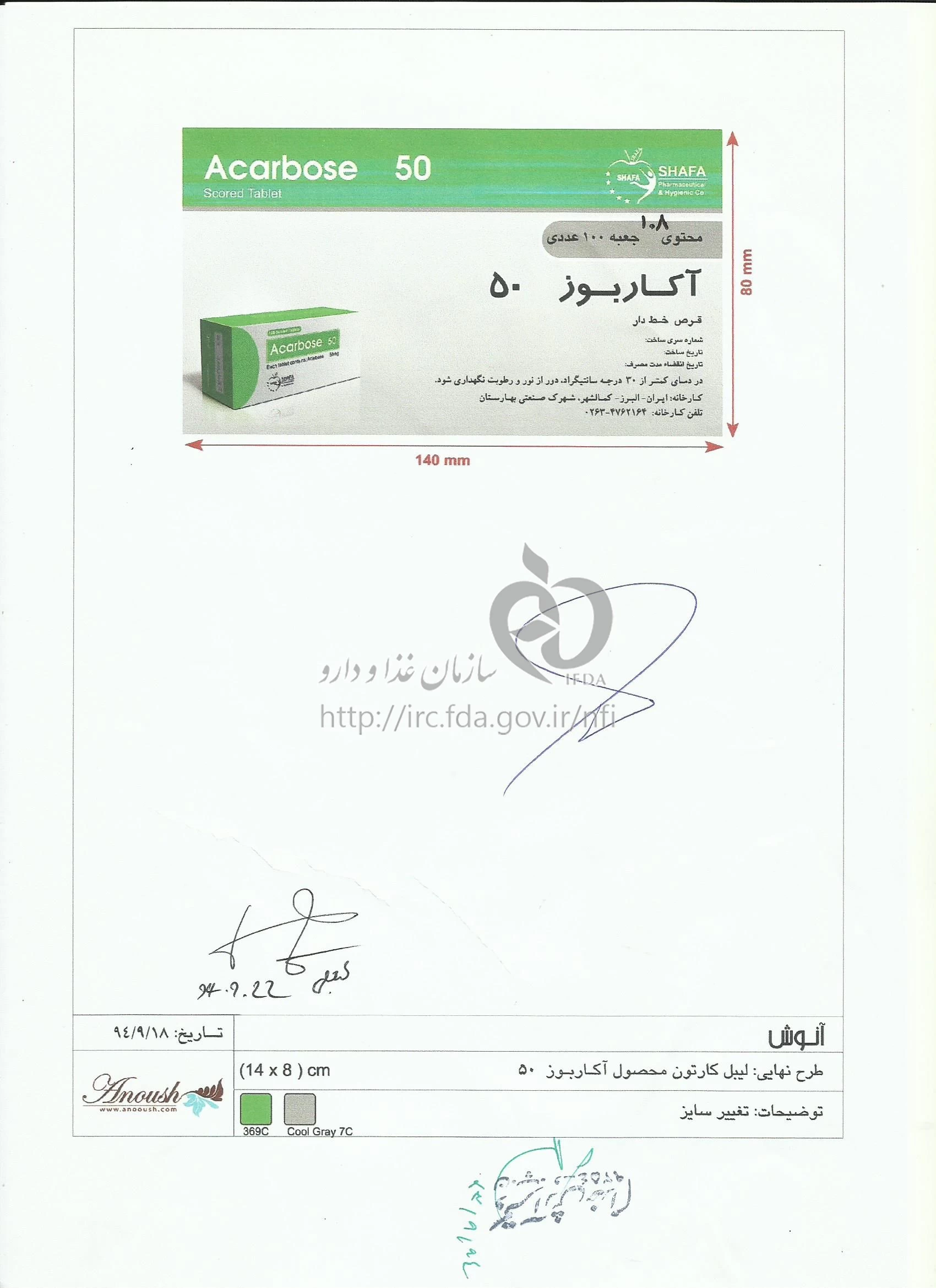 نکات قابل توصیه آکاربوز - شفا قرص خوراکی 50 mg