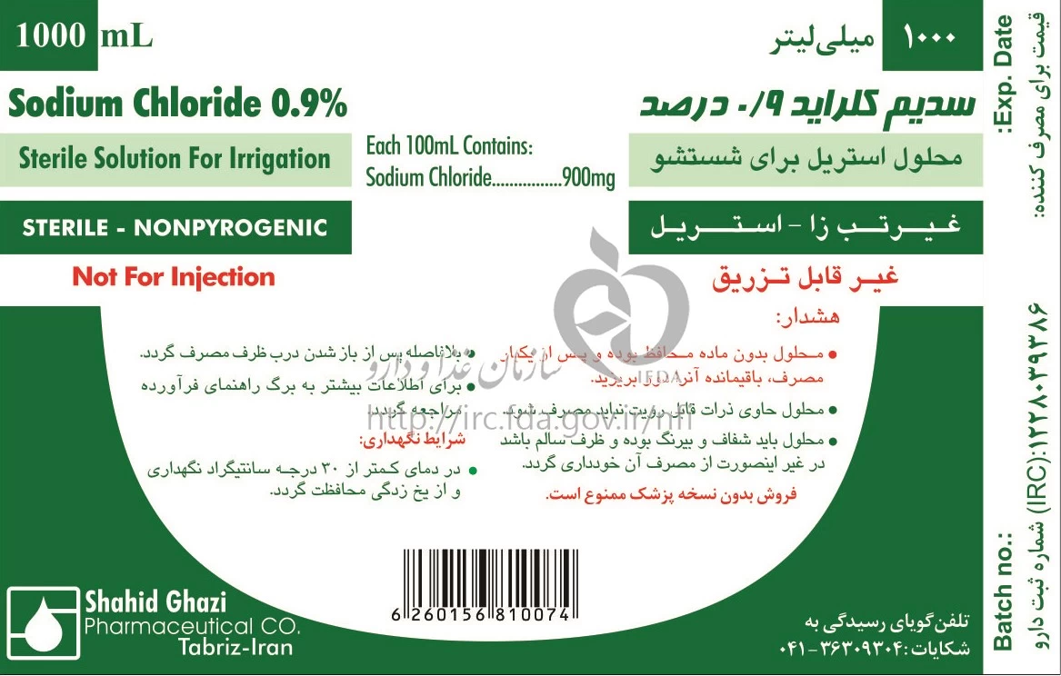 سدیم کلراید محلول جهت شستشو 0.9 % 1000MILLILITER