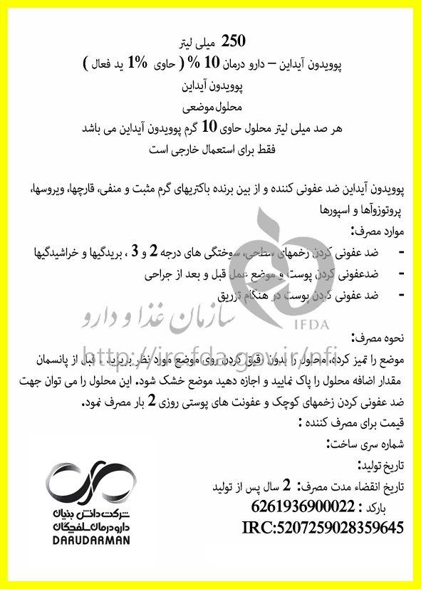 دکترها پوویدون آیداین - دارو درمان محلول موضعی 10 % 250MILLILITER
